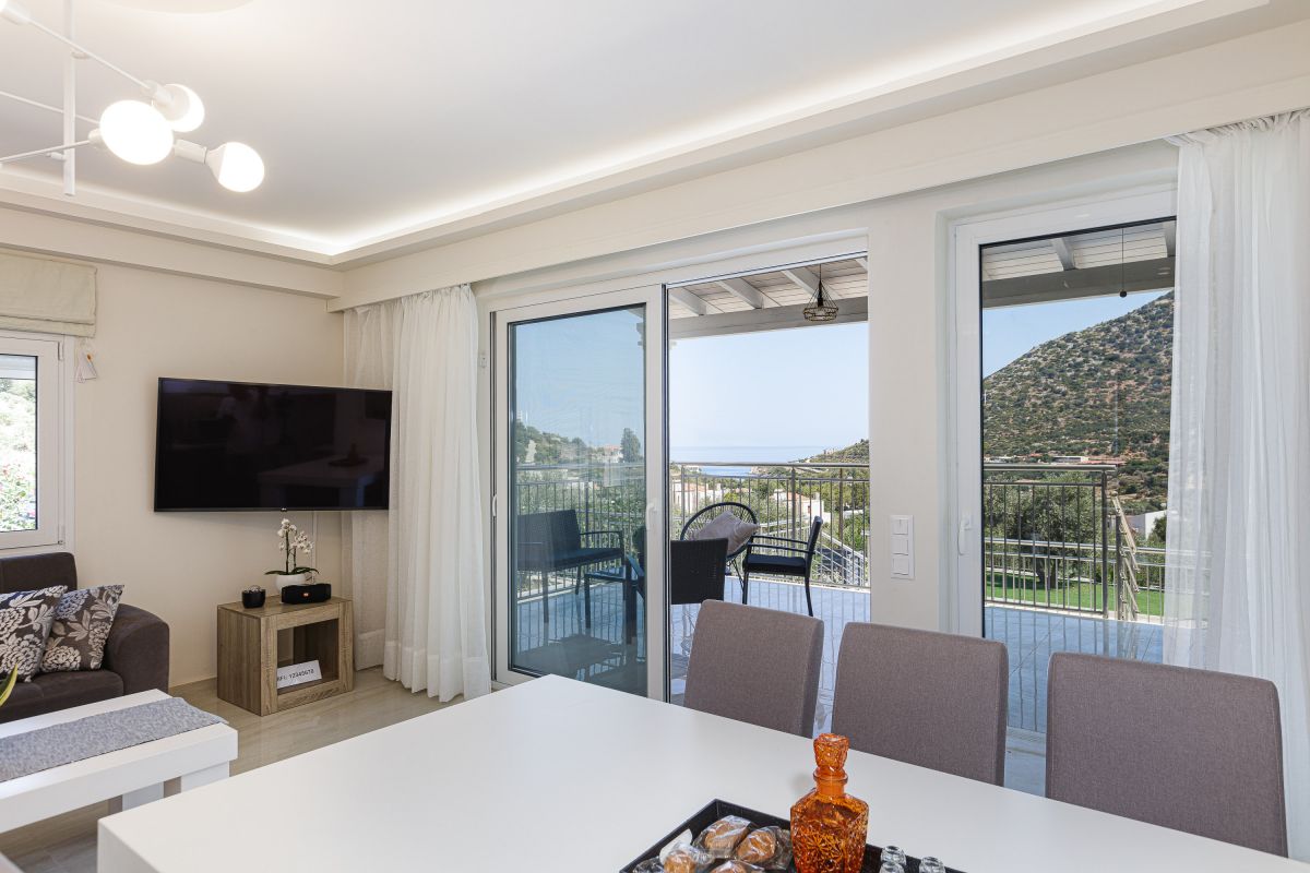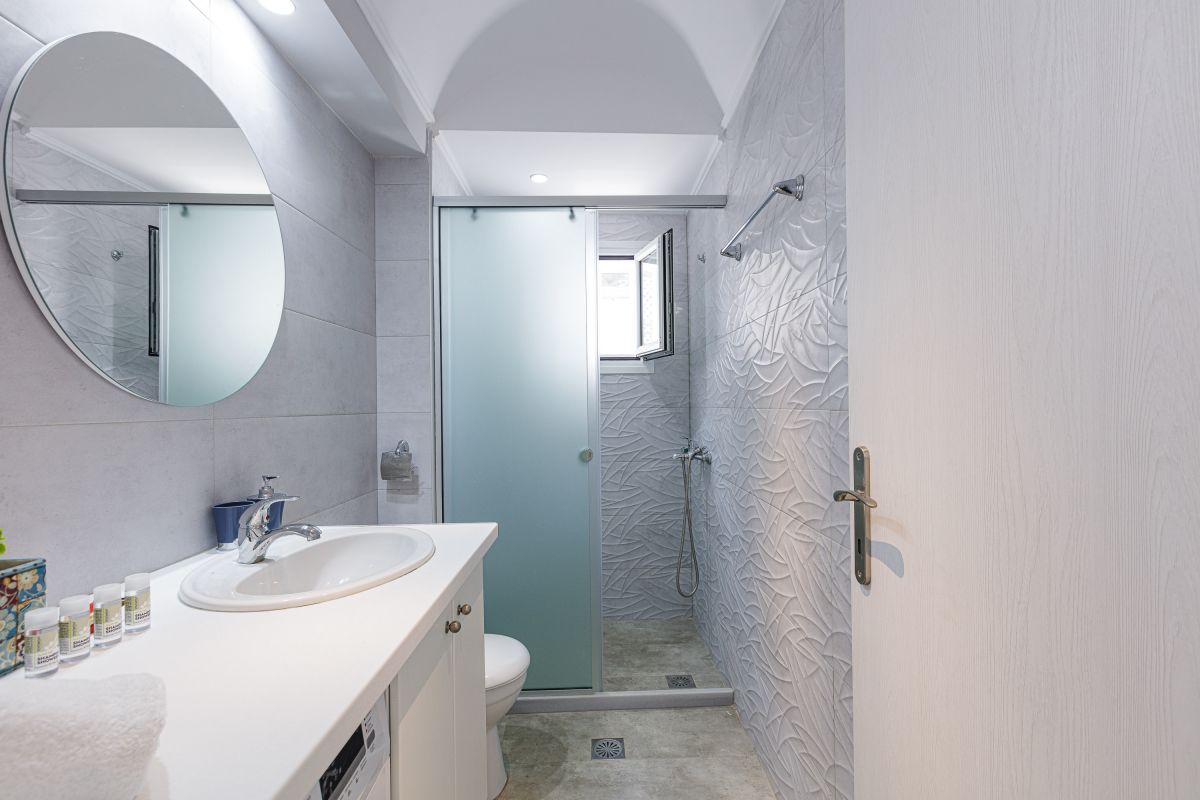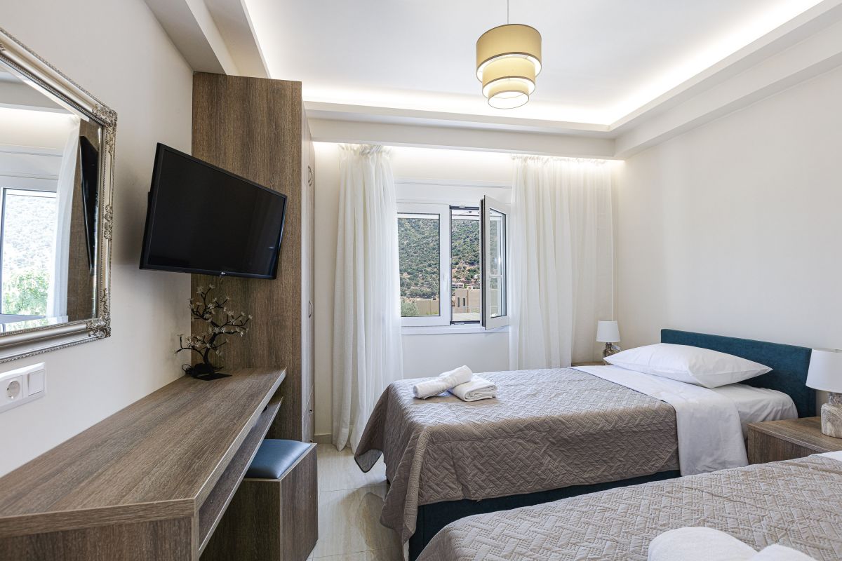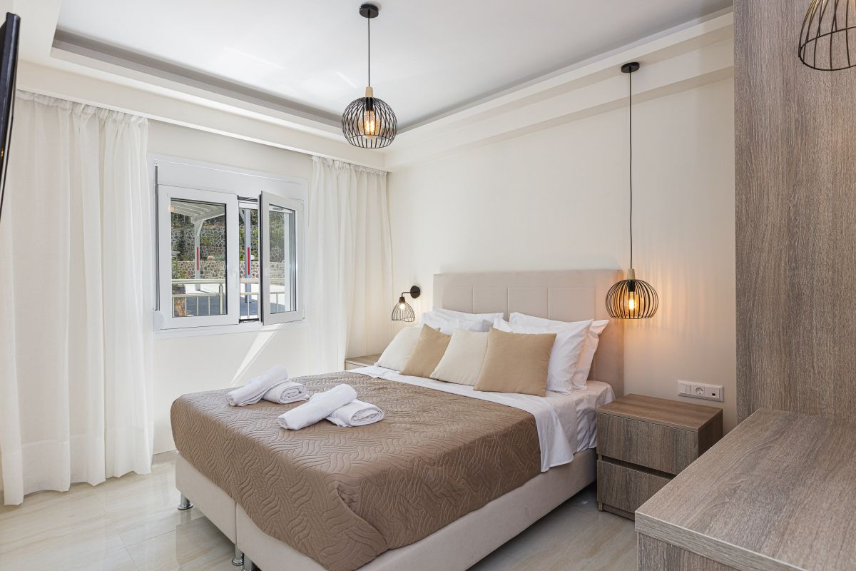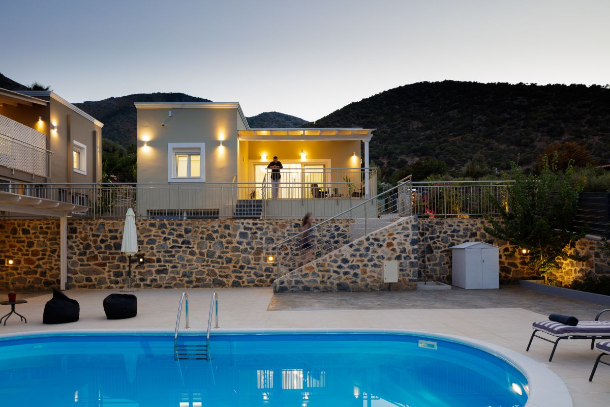 The impeccable outdoor area is host to a private swimming pool in a tranquil garden setting, perfect for families to sit back and enjoy their Crete vacation. There is a fantastic outdoor entertainment area with a gas grill BBQ and a dining area, as well as casual seating and a children’s play area, shielded by a large pergola. Furthermore, there is a football table for guests ’enjoyment while on holiday at the villa. The Crete holiday rental villa also includes parking space for 2 cars.