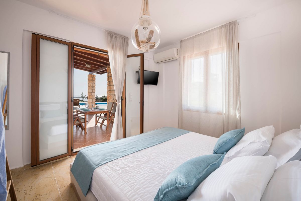 A homey mansion with charming interiors that sits on a hilltop location in Akrotiri peninsular, near Chania Airport, less than 100m away from the seafront and 1500 km from the legendary beach of Stavros. Bluebell Villa is an inspiring Mediterranean property rental with the capacity to accommodate up to 7 guests, ideal to bring the best of summer holidays in Greece. It has been providing clients with high-quality comforts and ultra relaxation experience. Its spacious 3 Bed/3Bath, fully equipped kitchen, living and dining spaces exceed all expectations of a luxury villa, featuring design furniture handpicked by the owners, while the outdoor spaces are made to lounge, swim and unwind under the warm Cretan sun. At this sunny getaway, built on 1500sqm private gardens and a large 52sqm private pool, you will enjoy to whip up refreshments, heat up the barbecue to prepare local seafood and end the evening with a little stargazing.