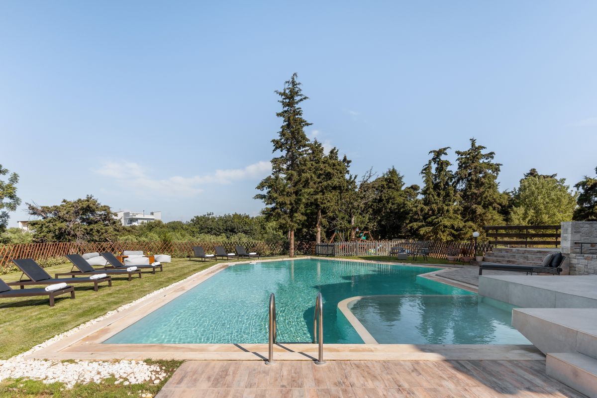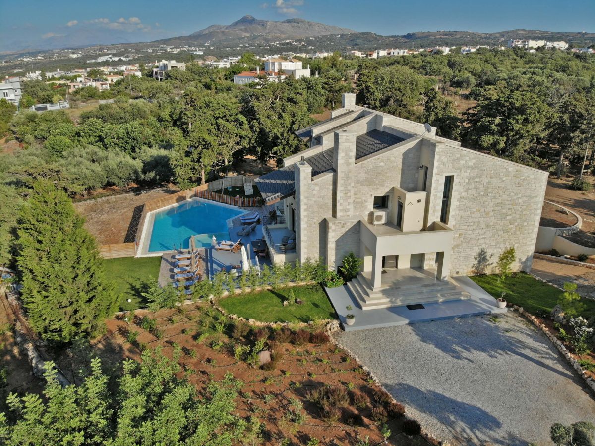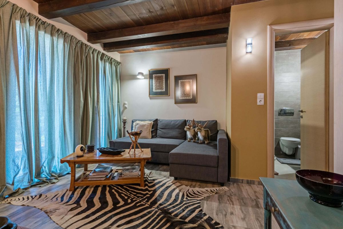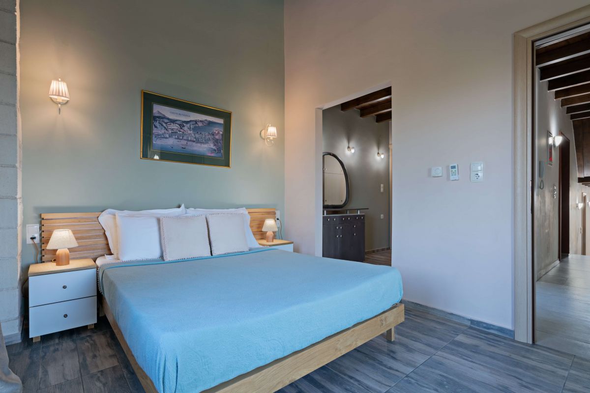 A return to tranquility and indulgence should always feel like home! This is the contemporary villa of 300sqm – ensuite bathrooms near the charming city of Rethymnon offering its temporary residences, a sense of being at home in its best version. The indigenous materials of wood and stone have been promulgated by the old wood ceiling style. Spacious living room with a view to the pool and outside area.
