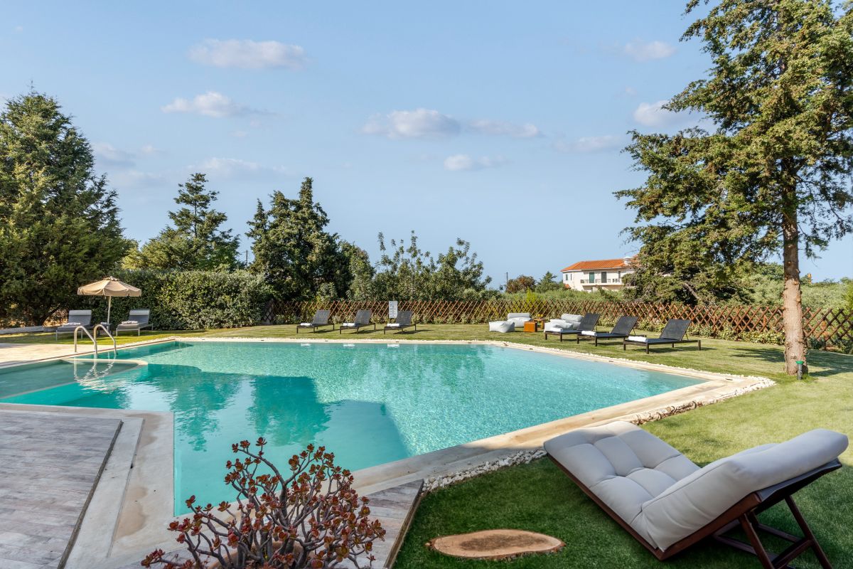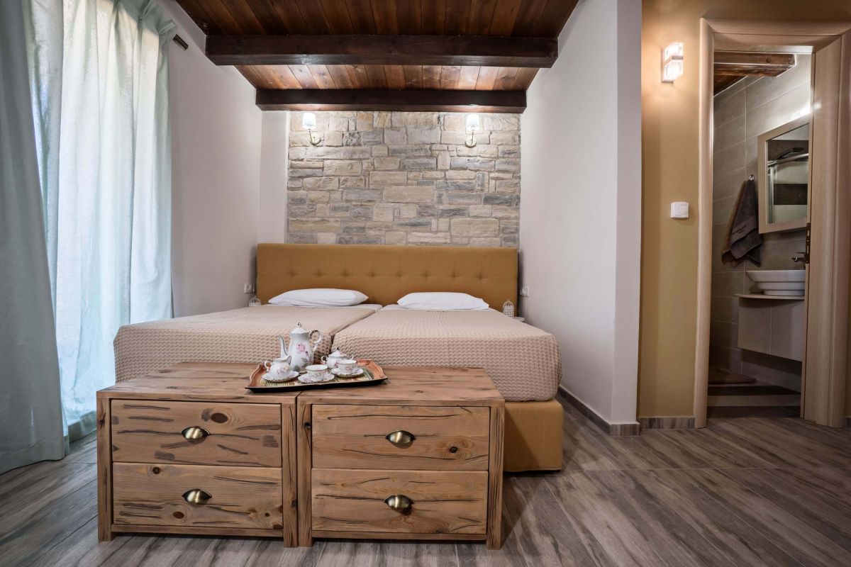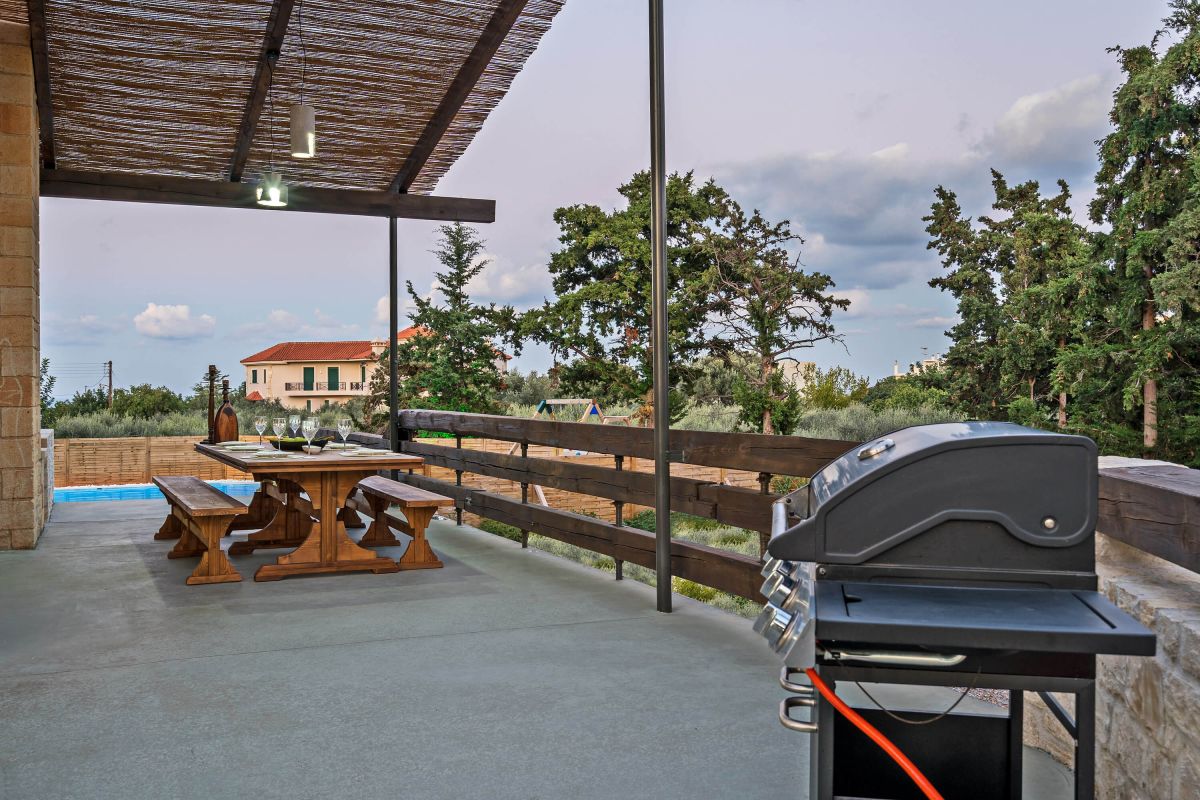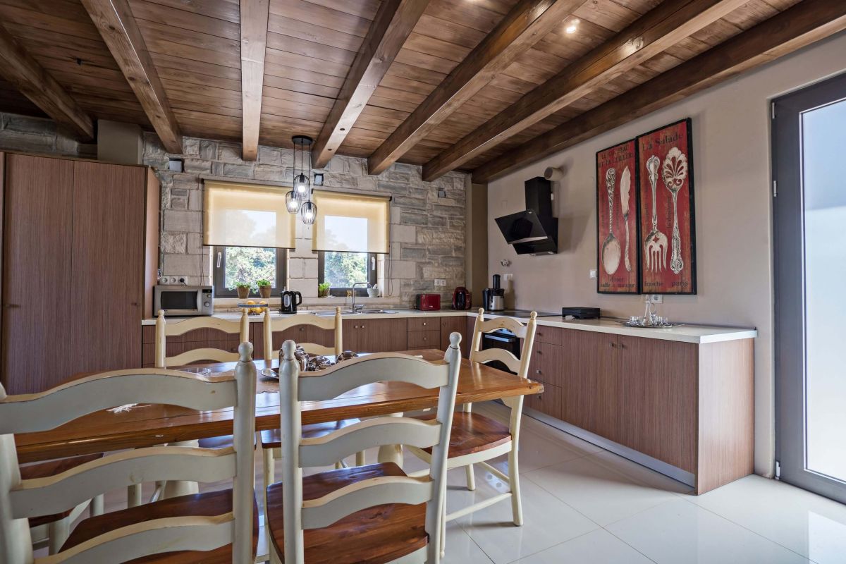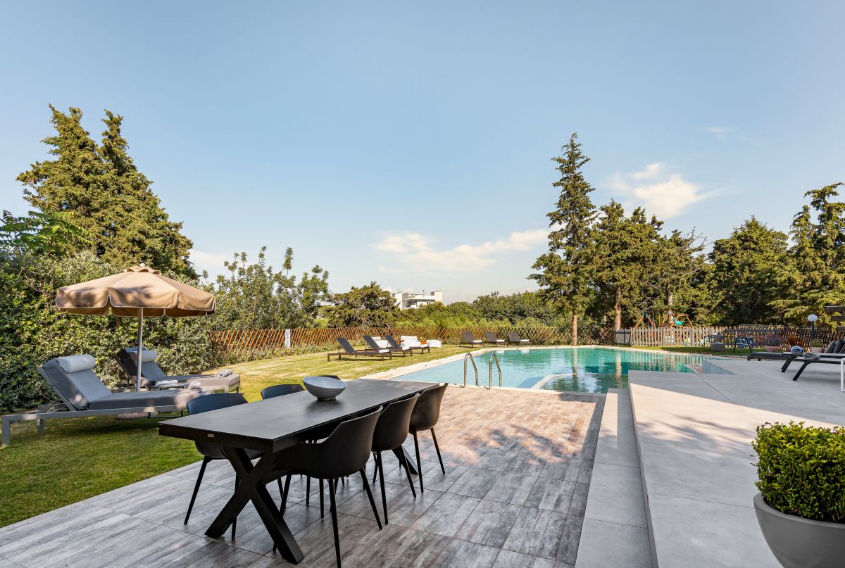 A return to tranquility and indulgence should always feel like home! This is the contemporary villa of 300sqm – ensuite bathrooms near the charming city of Rethymnon offering its temporary residences, a sense of being at home in its best version. The indigenous materials of wood and stone have been promulgated by the old wood ceiling style. Spacious living room with a view to the pool and outside area.