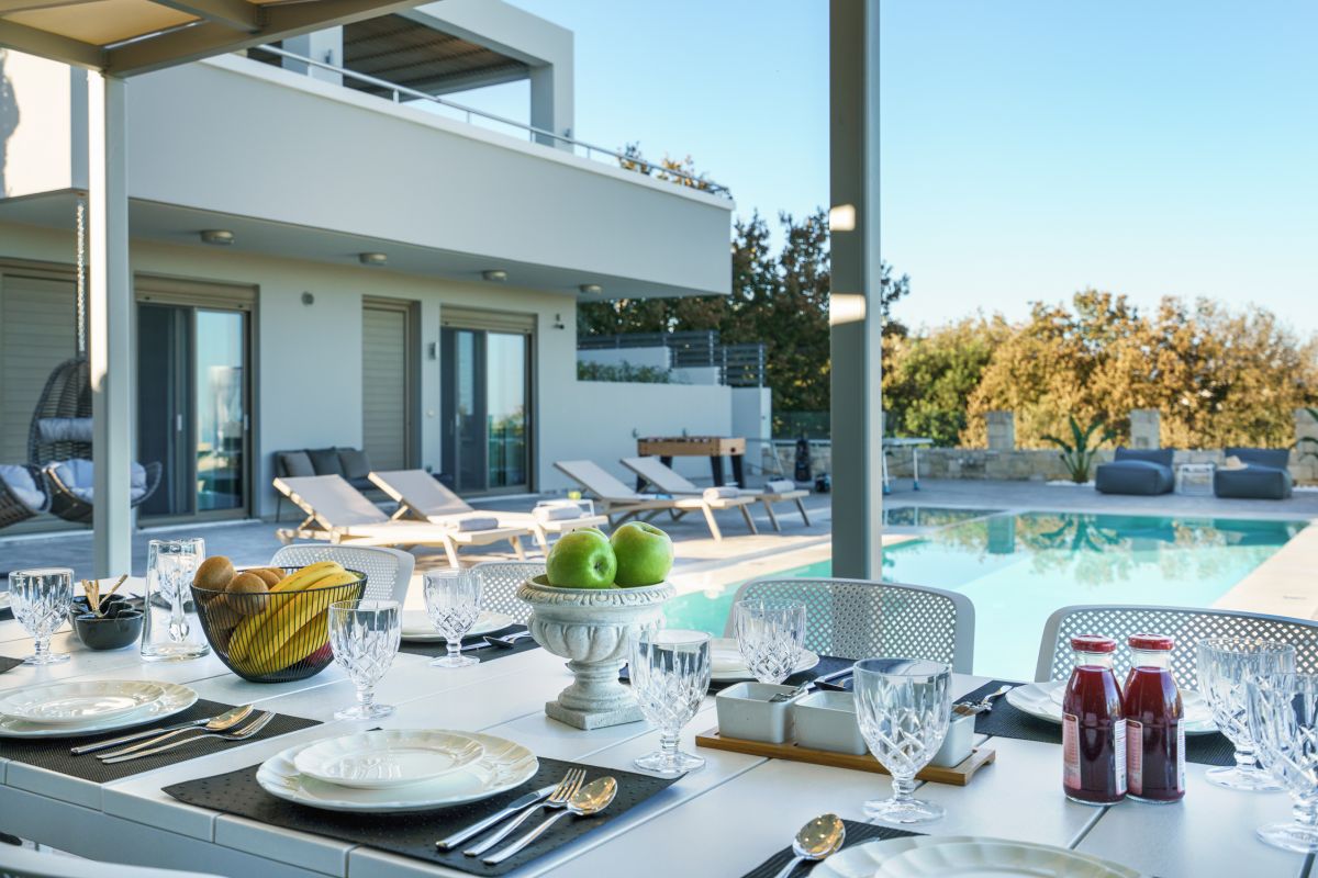 This Crete luxury villa is in the trendy area of Tria Monastiria, in the renowned holiday region of Rethymno. The holiday accommodation is perfect for family and friends and the surroundings offer a host of holiday attractions. The villa offers breakfast for guests every day (except Sunday)—a great way to get started!