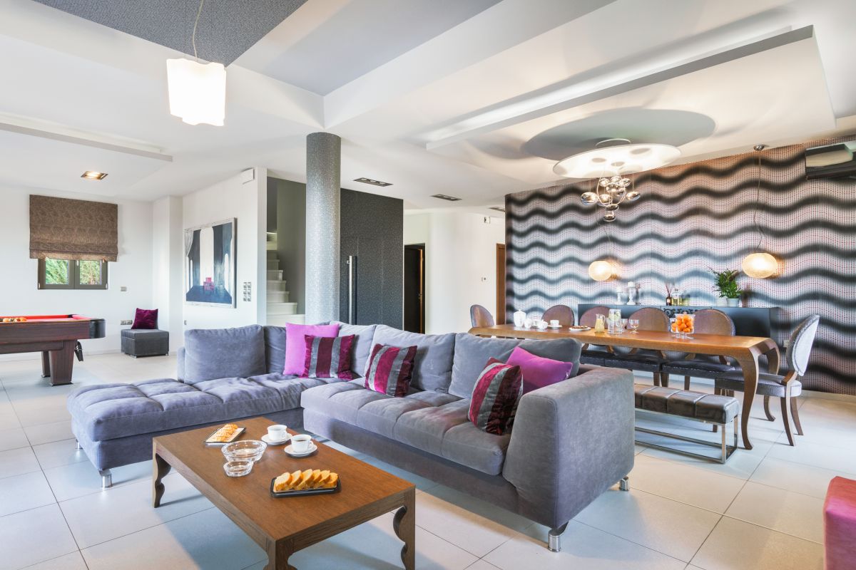 Oak Luxury Villa has 2 stylishly decorated and laid-out living rooms, 1 on the ground floor and another on the lower-ground floor. Each is equipped with comfortable seating, a 65″ HDTV/Smart TV, Bluetooth stereo, a Ps4 game console, board games, a built-in fireplace, and air conditioning.